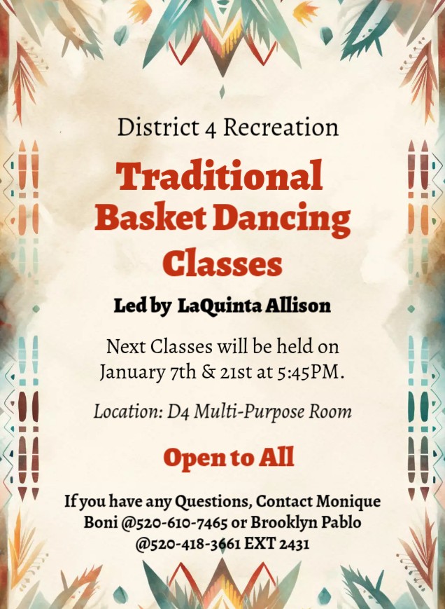 The Santan mountain range played a role in the history of District 4 as do many other aspects of the land that surround the community. The mountain range tells a story that connects the people with the land, not only as a striking landmark but also through stories that are passed down from the elders of how the mountains influenced and shaped the people of this part of the Gila River Indian Community. The District is 119 square miles and has seen the most industrial growth of any of the districts.
